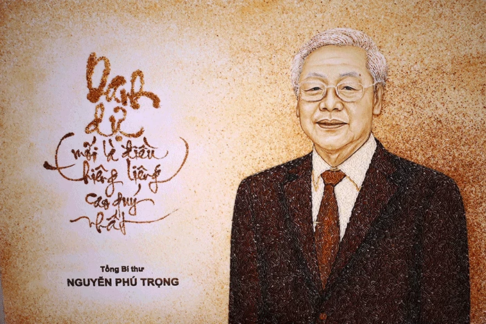 Bức tranh gạo chân dung Tổng Bí thư Nguyễn Phú Trọng.