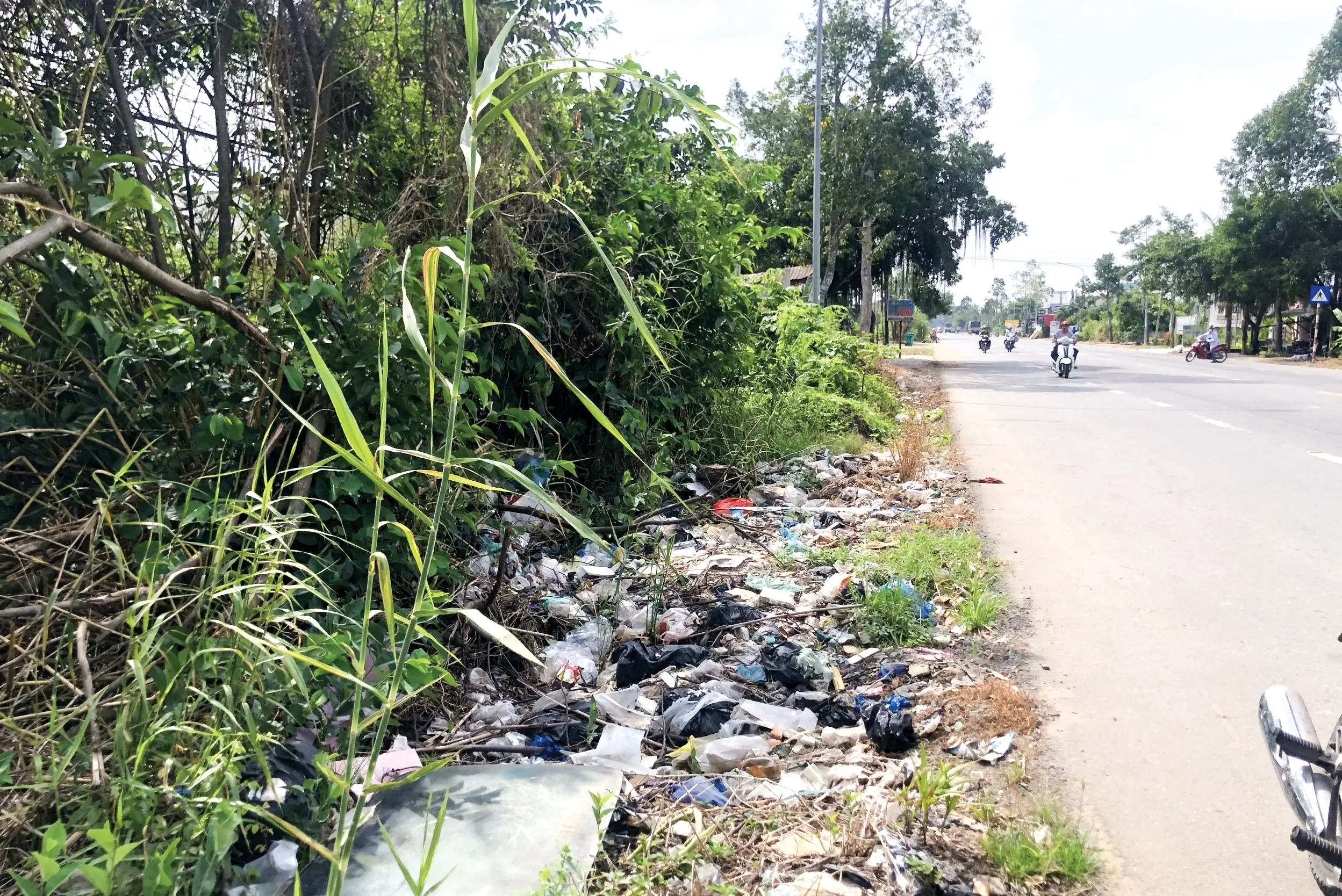 Rác thải trên đường Võ Văn Kiệt, khóm 1, phường Phú Lợi.