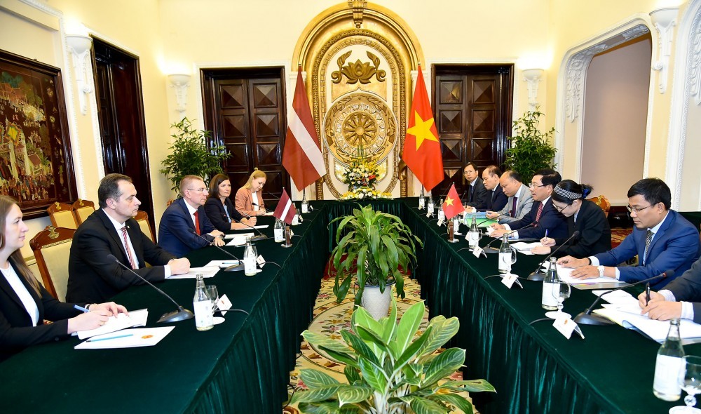 Phó Thủ tướng, Bộ trưởng Phạm Bình Minh và Bộ trưởng Ngoại giao Lát-vi-a Ết-ga Rin-kê-vích đánh giá cao sự hợp tác hiệu quả giữa hai nước trên các diễn đàn đa phương, nhất trí cần tiếp tục phối hợp chặt chẽ trong khuôn khổ Liên hợp quốc, ASEM và các diễn đàn quốc tế.