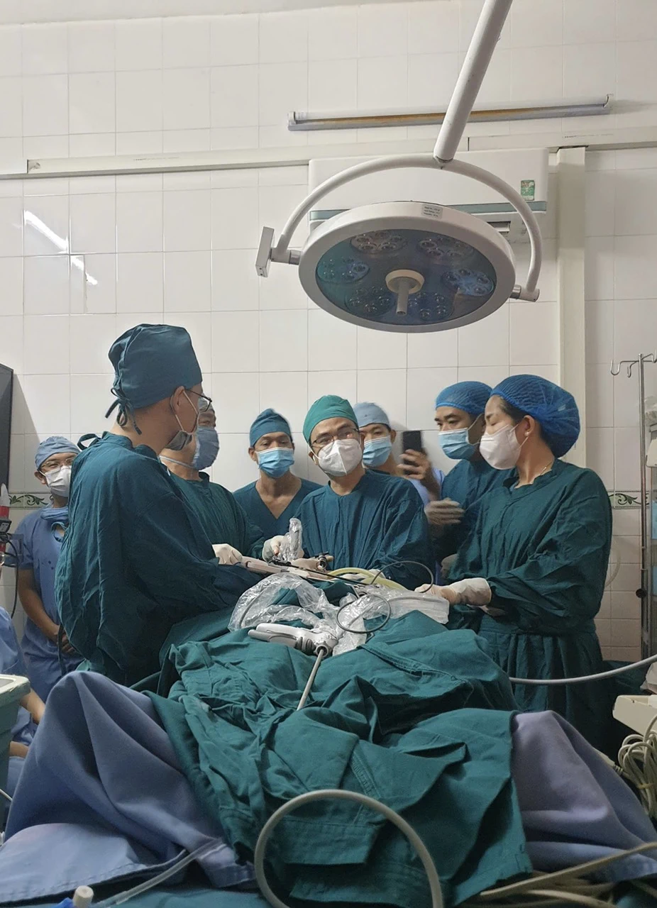 Các bác sĩ phẫu thuật cho bệnh nhân. Ảnh: BV cung cấp.