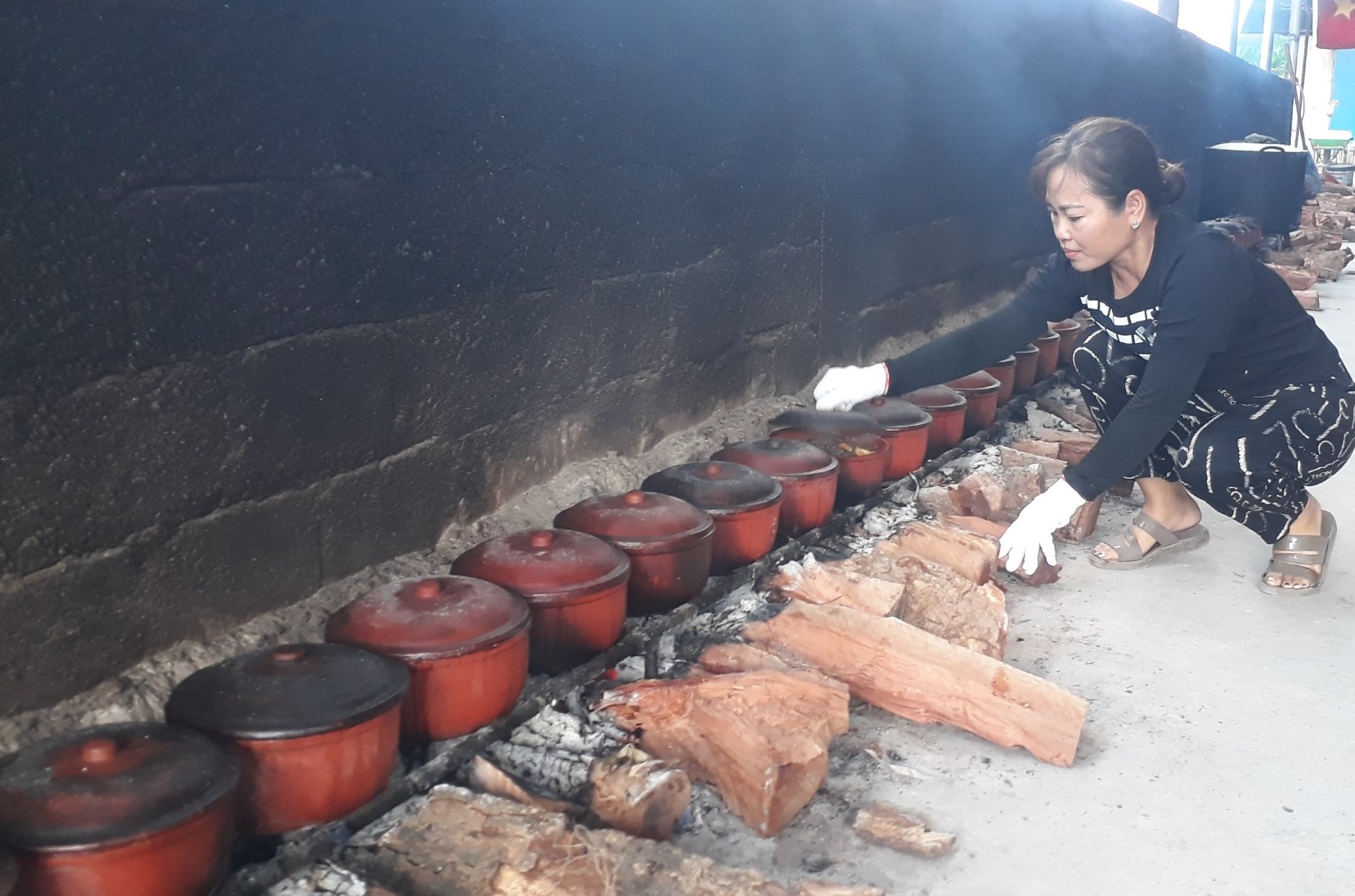 Cũng là một trong những cơ sở kho cá nổi tiếng có tiếng của làng, những ngày này, gia đình chị Trần Thu Hường cùng các thành viên trong gia đình đang bận bịu tối ngày với công việc kho cá.