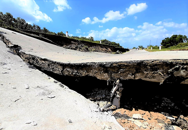 | Một đoạn lún sụt đường giao thông trên địa bàn tỉnh Cà Mau (Ảnh: Hiếu Nghĩa). |
