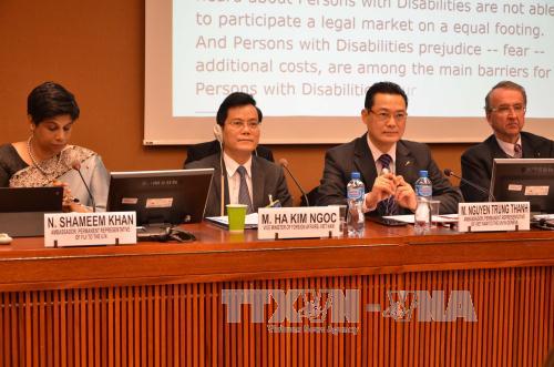 Tọa đàm có sự tham gia của Báo cáo viên đặc biệt của HĐNQ về quyền của người khuyết tật, đại diện Tổ chức Lao động quốc tế (ILO), Diễn đàn người khuyết tật Thái Bình Dương, đại diện hơn 40 nước và tổ chức quốc tế và nhiều tổ chức phi chính phủ. Thứ trưởng Ngoại giao Hà Kim Ngọc, trưởng đoàn Việt Nam dự Hội nghị cấp cao HĐNQ, phát biểu khai mạc tọa đàm; Đại sứ, Trưởng Phái đoàn Nguyễn Trung Thành đồng điều phối tọa đàm.