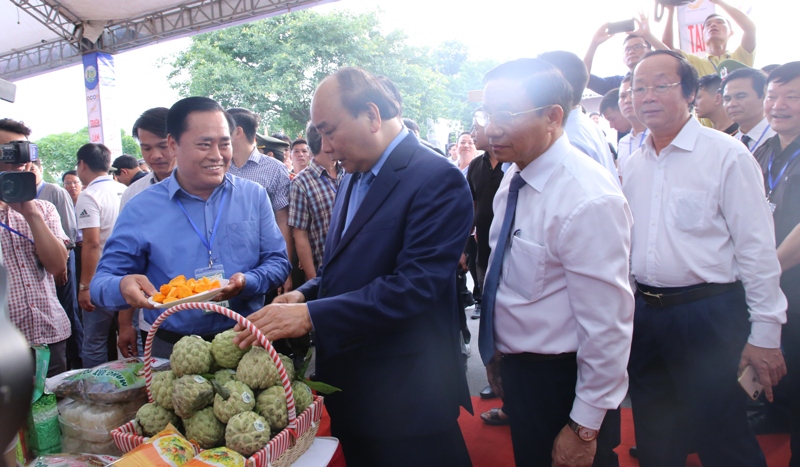 Thủ tướng Nguyễn Xuân Phúc cùng các đại biểu cắt băng khai mạc triển lãm. (Ảnh: VGP/Quang Hiếu)