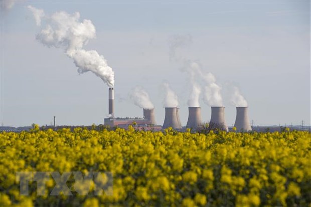 Khí thải phát ra từ một nhà máy gần Darlton, Anh. (Nguồn: AFP/TTXVN)