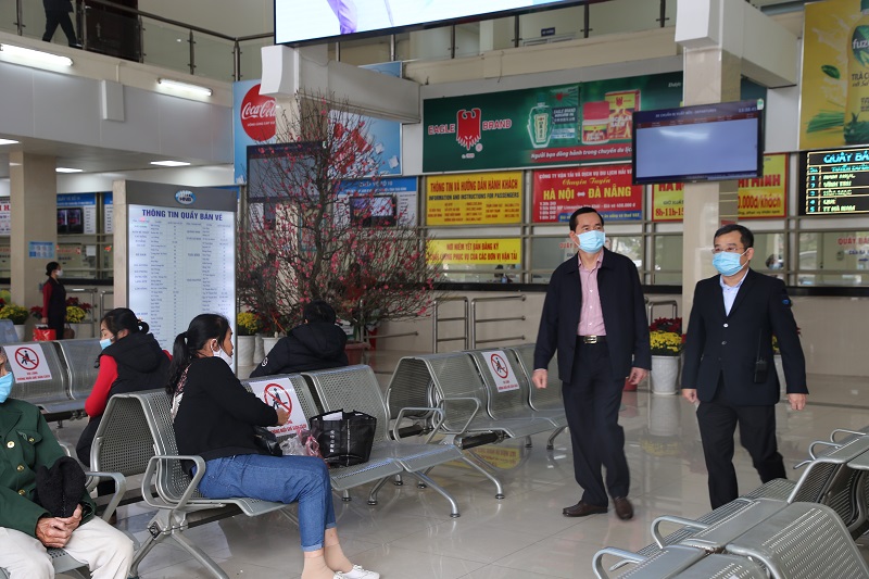 | Tổng cục trưởng Tổng cục Đường bộ việt Nam Nguyễn Văn Huyện (Người đi phía bên phải) thị sát bến xe trên địa bàn Hà Nội về đảm bảo trật tự an toàn giao thông và phòng chống dịch COVID-19 dịp Tết Nguyên đán 2021. |