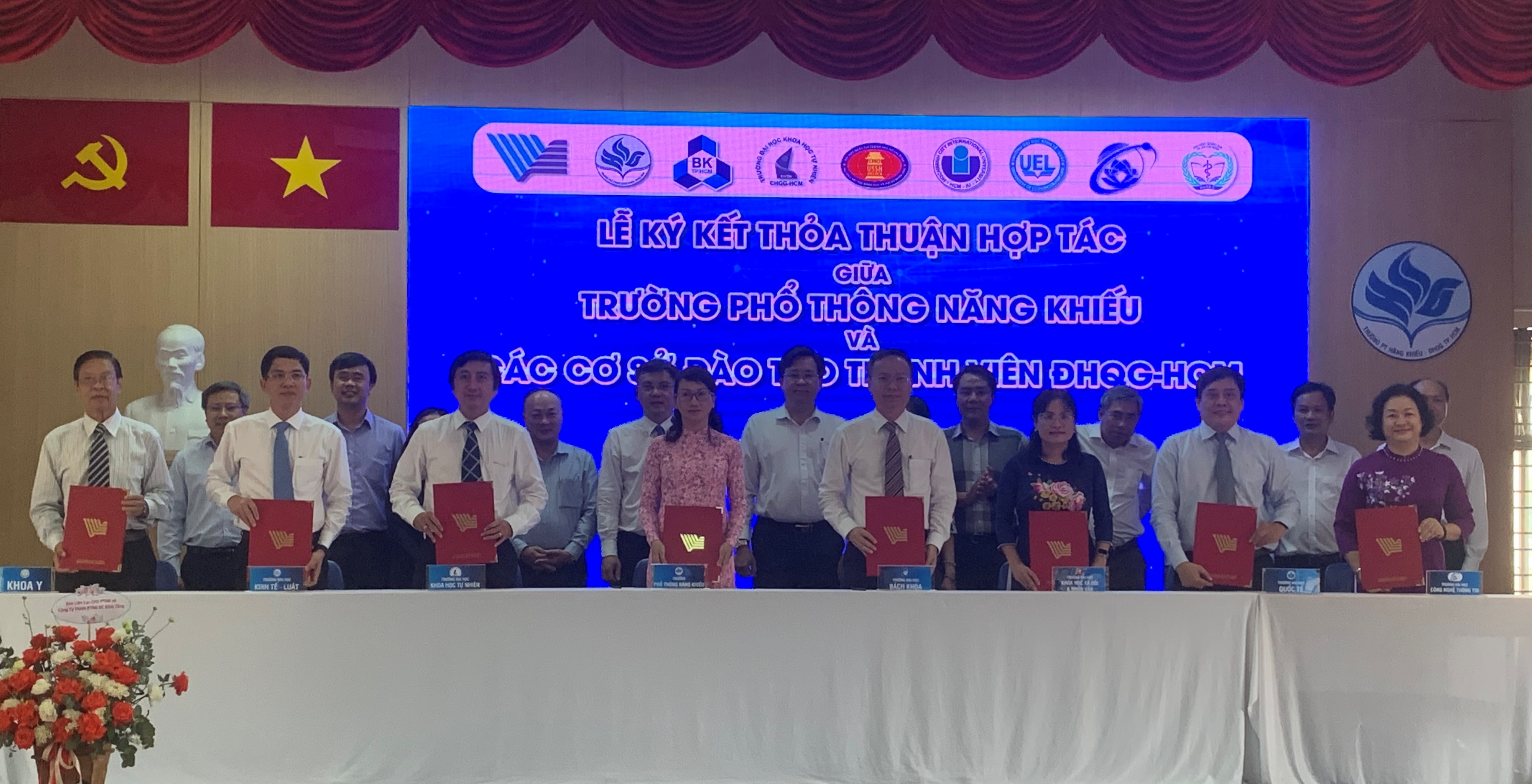 Mới đây, trường Phổ thông Năng khiếu (PTNK) đã ký kết hợp tác toàn diện với 07 cơ sở đào tạo thành viên ĐHQG-HCM nhằm phát triển hoạt động đào tạo, nghiên cứu khoa học và xây dựng quỹ học bổng hỗ trợ học sinh có hoàn cảnh khó khăn và có thành tích học tập xuất sắc của Trường Phổ thông Năng khiếu .
