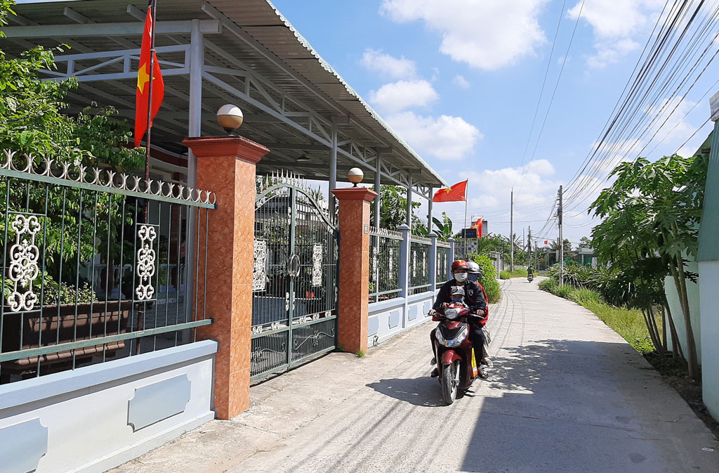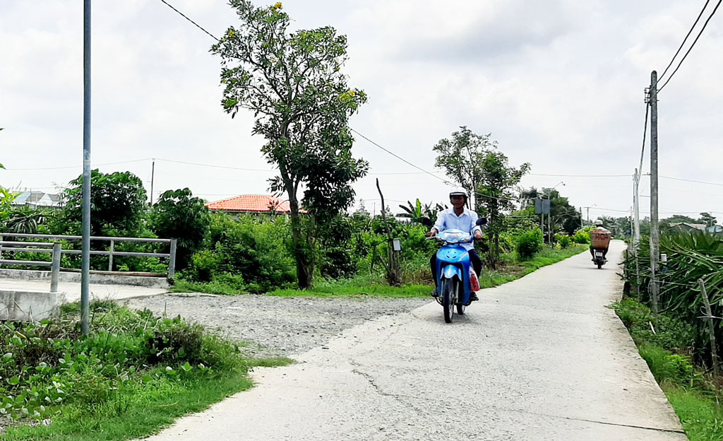 Ý thức người dân dần được nâng lên, người dân vui vẻ đóng góp cùng chính quyền địa phương để xây dựng quê hương. (Trong ảnh: Đường giao thông nông thôn ấp Thanh Quới, xã Thanh Phú Long được bê tông hóa, có đèn đường thắp sáng và trồng cây hai bên đường)