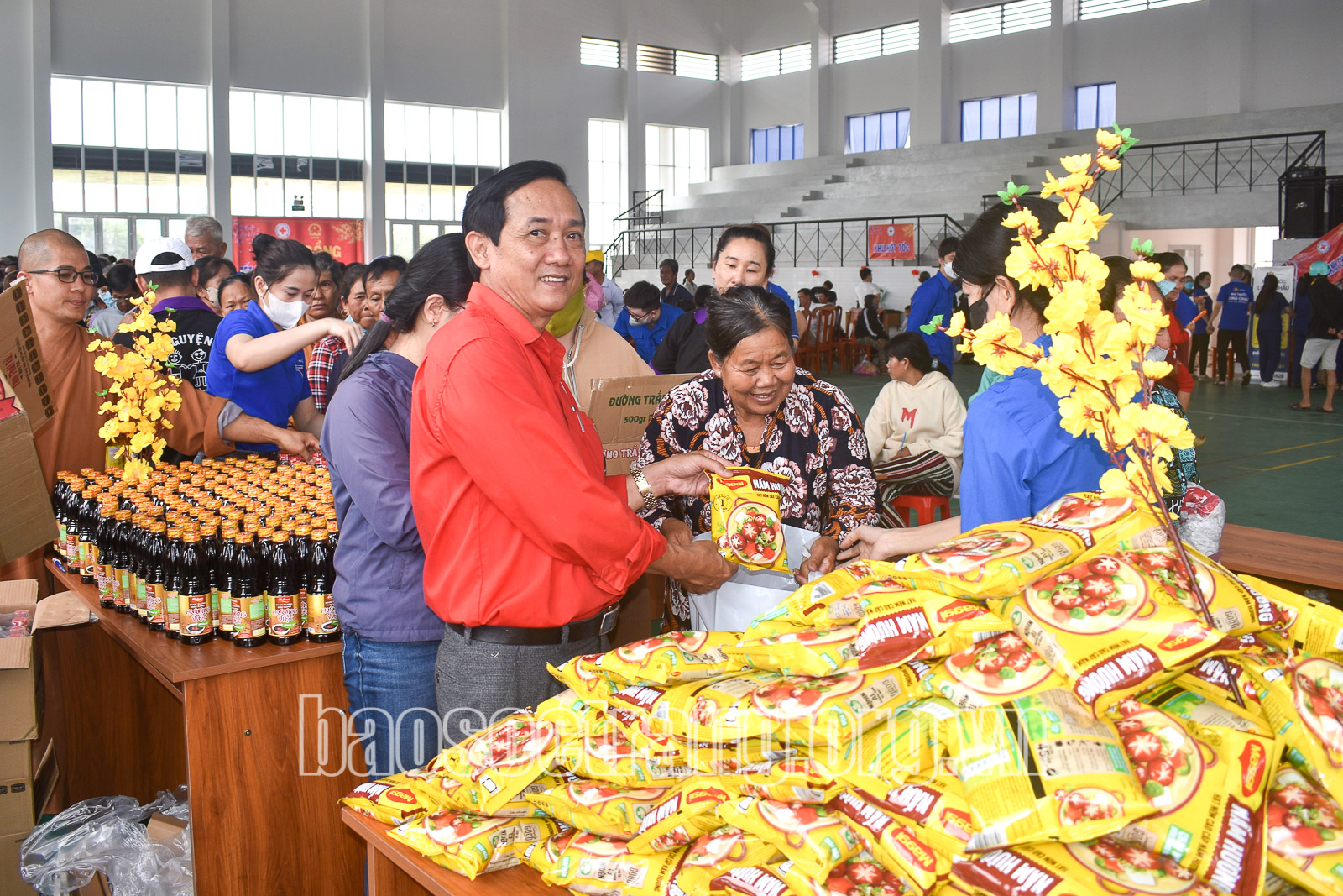 | Trao tặng quà cho người dân có hoàn cảnh khó khăn tỉnh Bình Thuận tại chương trình Tết Nhân ái năm 2023. (Ảnh: Nguyễn Hân) |