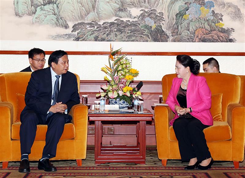 Chủ tịch Quốc hội Nguyễn Thị Kim Ngân bày tỏ vui mừng gặp đại diện một số doanh nghiệp tại Bắc Kinh, đồng thời cho biết mục đích chuyến thăm chính thức Trung Quốc lần này của Đoàn đại biểu cấp cao Quốc hội Việt Nam nhằm tiếp tục thực hiện thỏa thuận cấp cao hai nước đã đạt được trong các cuộc tiếp xúc thời gian qua, thỏa thuận hợp tác giữa Quốc hội hai nước.