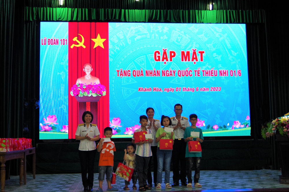 Dịp này, Lữ đoàn 101 trao 122 phần quà; đồng thời, trao 107 phần quà của Bộ Quốc phòng, Bộ Tư lệnh Vùng 4, Hội Bảo trợ trẻ em Việt Nam và Uỷ ban Dân số, Gia đình và trẻ em cho các cháu thiếu nhi. Tại buổi gặp mặt, các cháu thiếu nhi được xem biểu diễn văn nghệ do các hạt nhân văn nghệ của Lữ đoàn và các cháu có năng khiếu cùng biểu diễn.