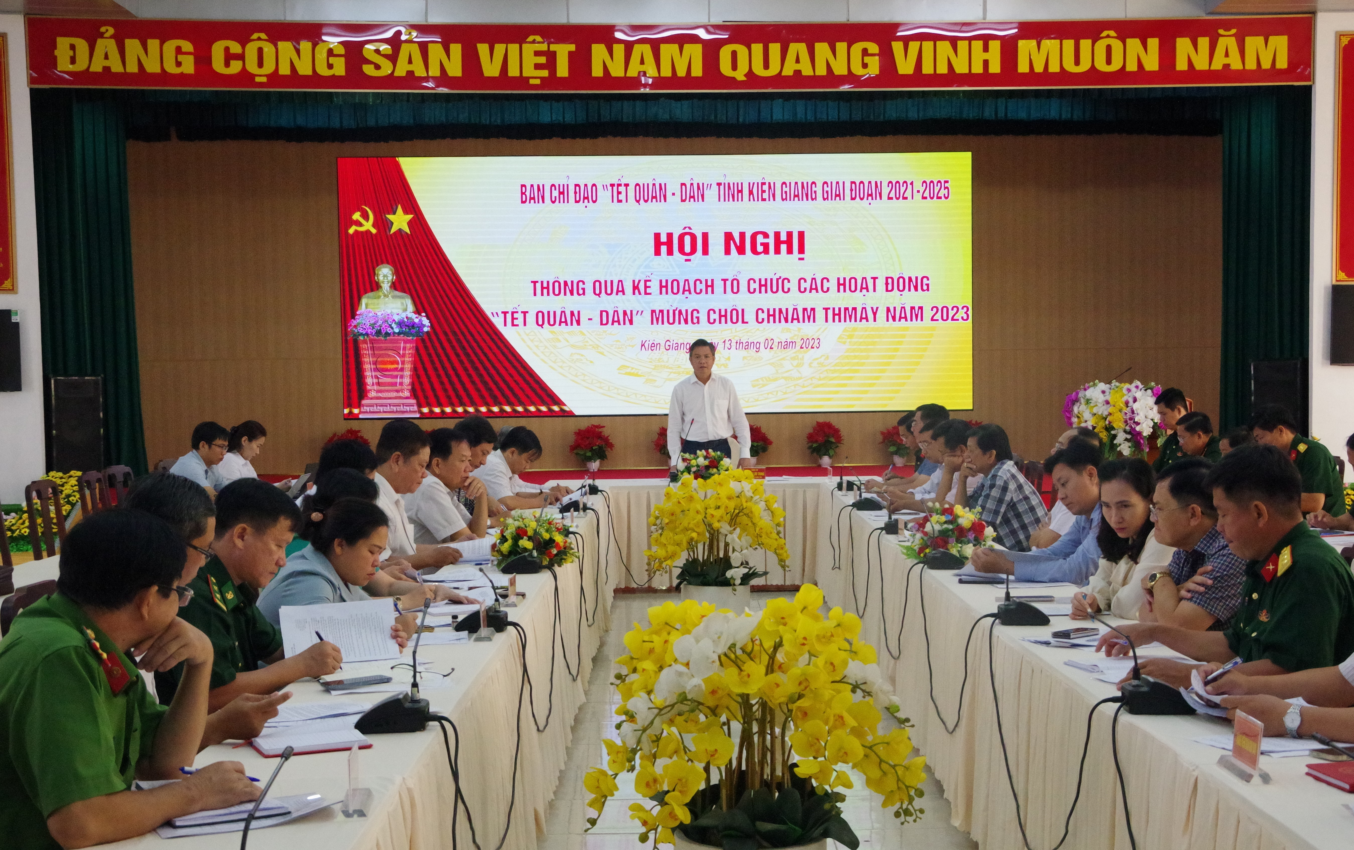 Phát biểu tại hội nghị, đồng chí Nguyễn Lưu Trung - Phó Chủ tịch Ủy ban Nhân dân tỉnh, Trưởng Ban Chỉ đạo các hoạt động Tết quân - dân tỉnh giai đoạn 2021-2025 yêu cầu các sở, ban, ngành, Mặt trận Tổ quốc, các tổ chức chính trị xã hội, tổ chức xã hội nhân đạo, cán bộ, chiến sĩ lực lượng vũ trang đóng quân trên địa bàn tỉnh và nhân dân tích cực tham gia các hoạt động Tết quân - dân mừng Chôl Chnăm Thmây năm 2023 đạt các chỉ tiêu theo kế hoạch, đảm bảo an toàn. Đặc biệt, đồng chí Nguyễn Lưu Trung nhấn mạnh các cơ quan báo, đài tập trung thông tin, tuyên truyền các hoạt động Tết quân - dân mừng Chôl Chnăm Thmây năm 2023, tạo sự an tỏa sâu rộng ý nghĩa, tầm quan trọng của hoạt động trong quần chúng nhân dân./.