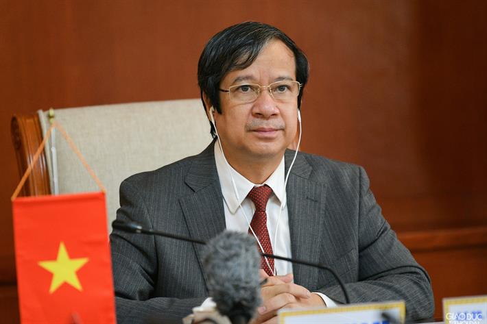 Trong bài phát biểu đối thoại tại Hội nghị, Bộ trưởng Bộ GD&ĐT Việt Nam Nguyễn Kim Sơn đã chia sẻ những tác động của đại dịch COVID-19 tới giáo dục Việt Nam và những thay đổi để thích ứng, trong đó chủ trương “tạm dừng đến trường, không ngừng việc học” đã được thực hiện hiệu quả thông qua các hình thức dạy học qua Internet, trên truyền hình phù hợp trong điều kiện dịch bệnh.