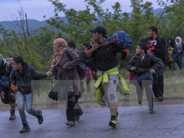 Người tị nạn Syria tìm cách vượt biên trái phép qua khu vực biên giới Hy Lạp-Macedonia. (Nguồn: AFP/TTXVN)
