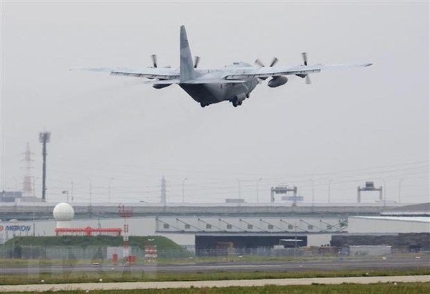 Máy bay quân sự của Nhật Bản cất cánh từ căn cứ Komaki ở tỉnh Aichi, tới Djibouti để sơ tán công dân Nhật Bản từ Sudan, ngày 21/4/2023. (Ảnh: AFP/TTXVN)