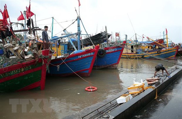 Tàu thuyền đánh cá đã neo đậu tại bến cá Ngọc Hải, quận Đồ Sơn, thành phố Hải Phòng. (Ảnh: An Đăng/TTXVN)