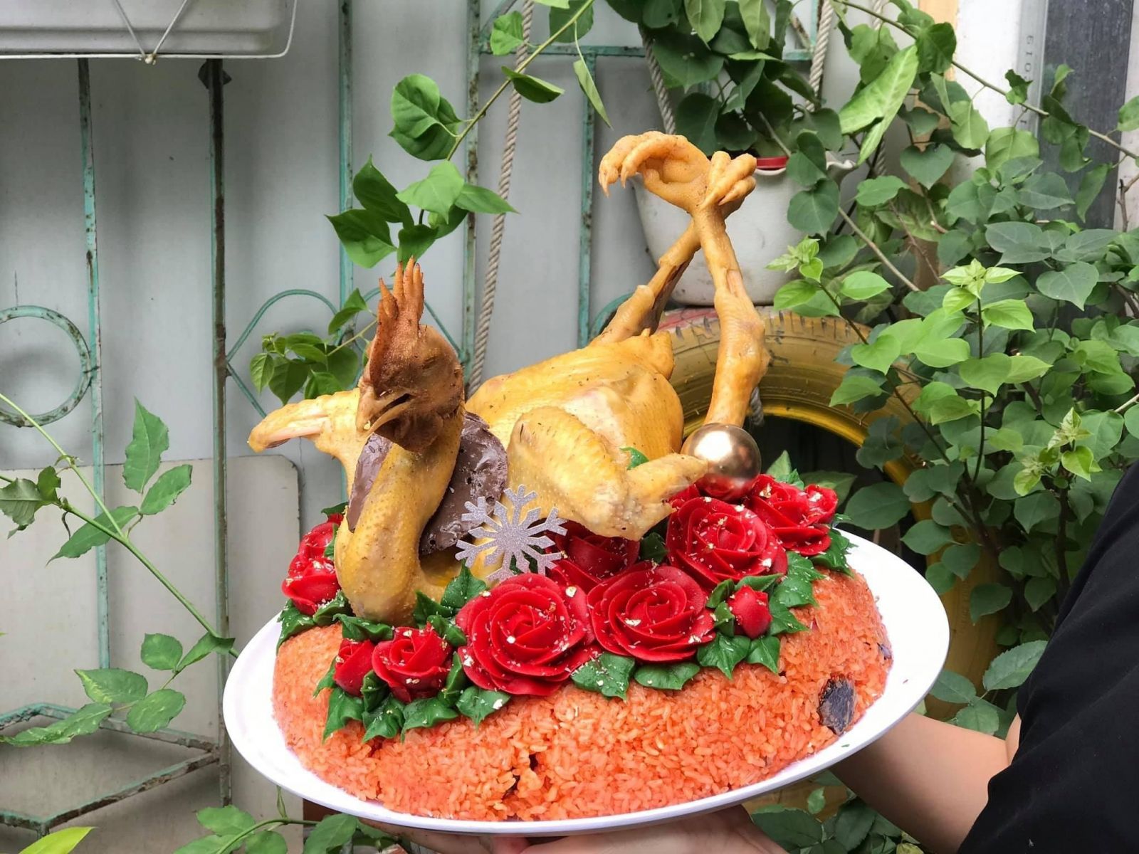 Nhiều gia đình cũng đặt "gà ngự vườn hồng" để cúng tất niên (Q.TRANG)