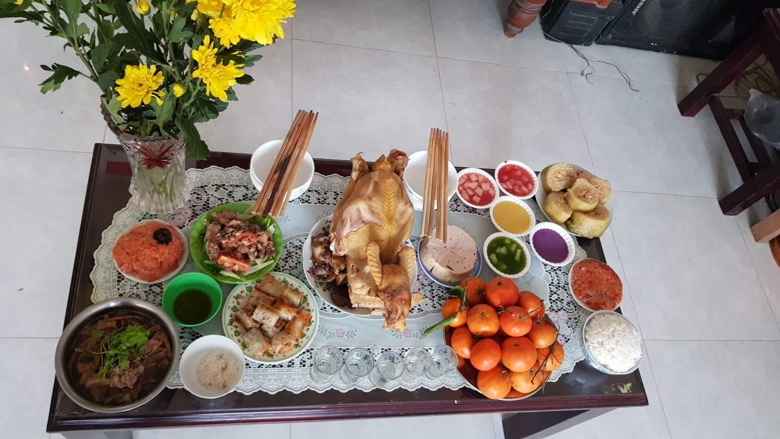Mâm cúng tất niên đơn giản của gia đình Việt với các món truyền thống (V.P)