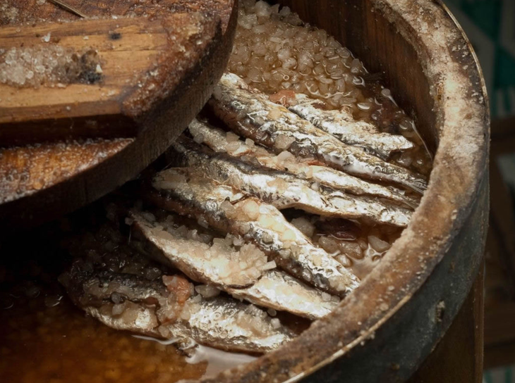 Cá cơm được ủ bên trong thùng gỗ terzigni - Ảnh: CANVA