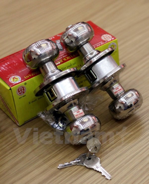 Khóa Việt Tiệp thật và giả để cạnh nhau không thể phân biệt bằng mắt thường. (Ảnh: Doãn Đức/Vietnam+)
