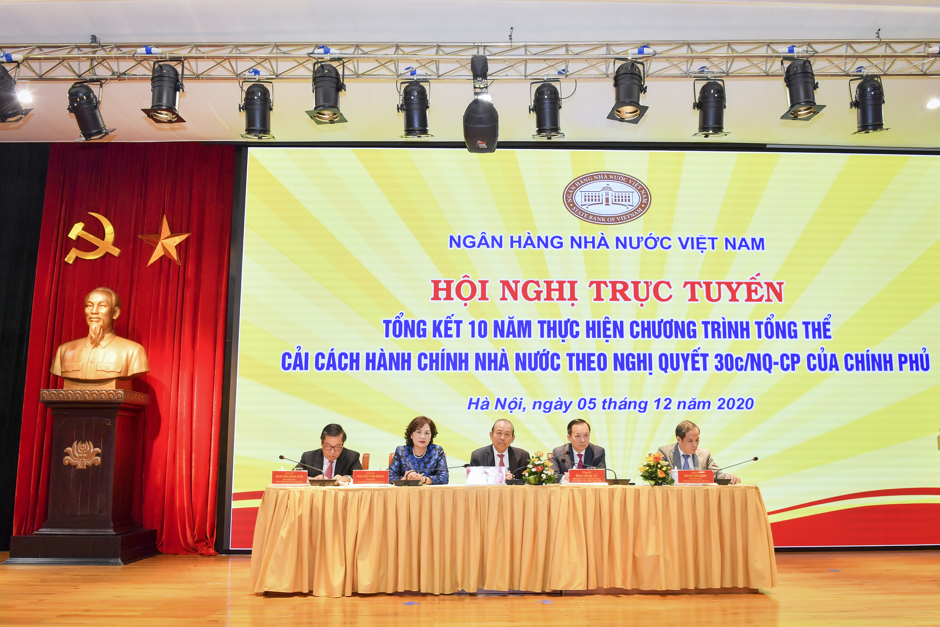 Ngày 5/12, tại Hà Nội, Ngân hàng Nhà nước tổ chức Hội nghị trực tuyến Tổng kết 10 năm thực hiện chương trình tổng thể cải cách hành chính nhà nước theo Nghị quyết 30c/NQ-CP của Chính phủ và định hướng 10 năm tới.