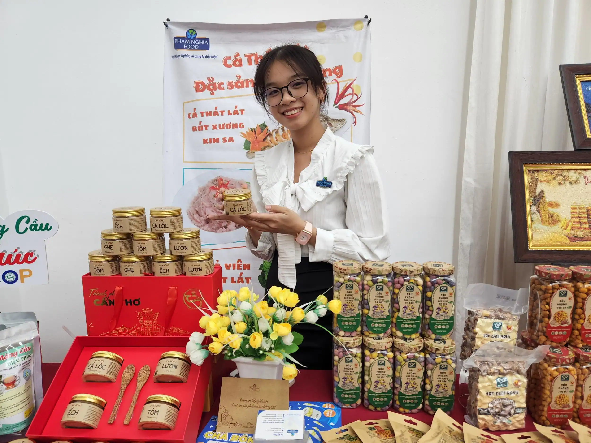 Công ty CP Thực phẩm Phạm Nghĩa, phường Phú Thứ quảng bá sản phẩm tại một sự kiện do thành phố tổ chức.
