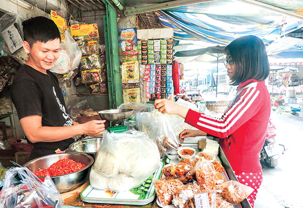 Ngành Thuế quận Cái Răng xác định đồng hành giải quyết khó khăn, tạo mọi điều kiện để doanh nghiệp, hộ kinh doanh phát triển sản xuất, kinh doanh là nền tảng thuận lợi cho hoạt động thu NSNN. Trong ảnh: Hoạt động buôn bán của tiểu thương tại chợ Cái Răng.