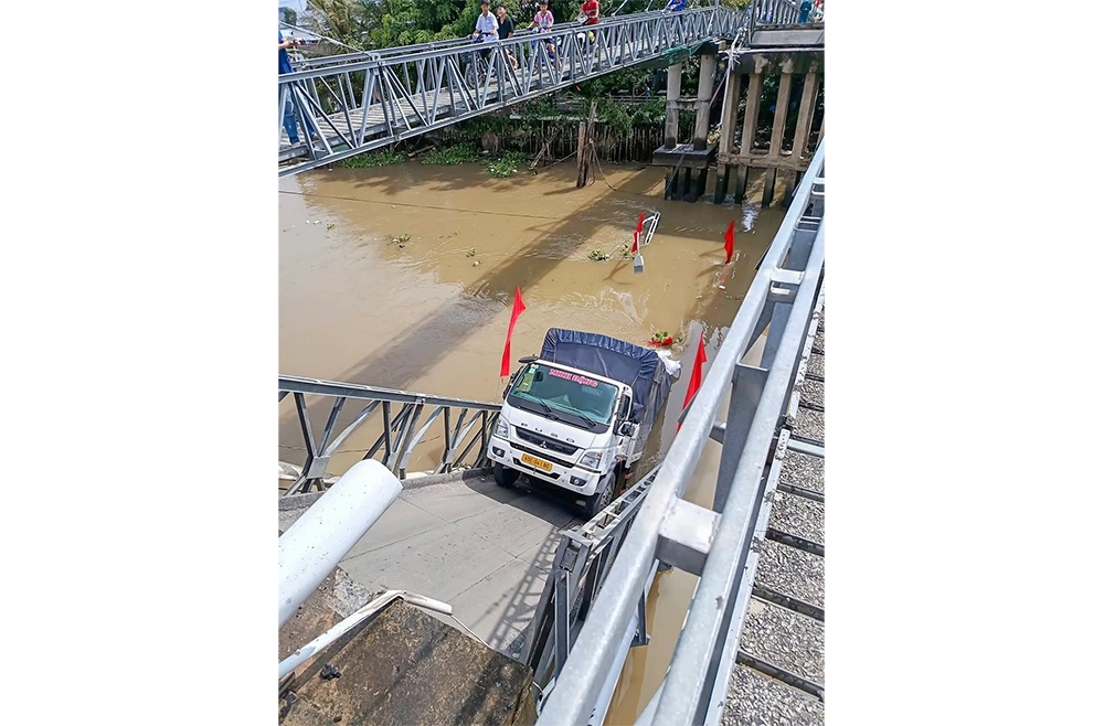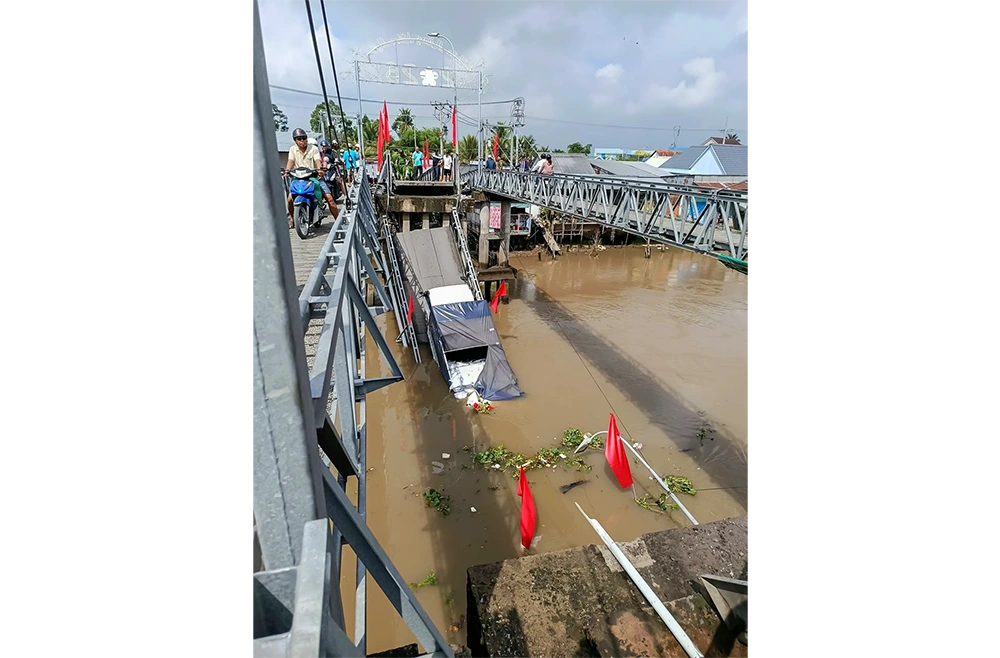 (CTO) - Khoảng 9 giờ 30 phút ngày 28-2, xe tải chở gạo lưu thông qua cầu 30 tháng 4, nối tỉnh lộ 921 và đường Nguyễn Trọng Quyền, gây sập luồng giữa dành cho xe 4 bánh (ảnh).