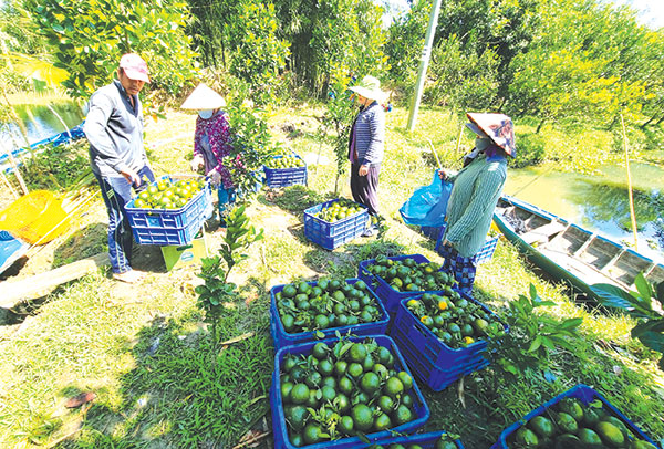 (CT) - Sau thời gian ở mức thấp, hiện giá cam sành tại nhiều địa phương vùng ÐBSCL đã tăng trở lại ít nhất từ 3.000-6.000 đồng/kg, tùy loại. Hiện giá cam sành tại nhiều nơi được nông dân bán xô tại vườn cho thương lái ở mức 6.000-7.000 đồng/kg, cam sành tuyển lựa loại 1 ở mức 8.000-10.000 đồng/kg. Còn cam sành bán lẻ tại nhiều chợ và điểm kinh doanh trái cây với giá 8.000-15.000 đồng/kg, riêng tại một số siêu thị có giá bán trên dưới 20.000 đồng/kg. Giá khởi sắc trở lại nhờ nhu cầu tiêu thụ tăng và lượng cam tới lứa thu hoạch cũng giảm so với trước. Các đơn vị, doanh nghiệp và ngành chức năng tại nhiều địa phương quan tâm đẩy mạnh các hoạt động hỗ trợ nông dân tiêu thụ cam sành cũng góp phần tạo điều kiện cho giá tăng trở lại.