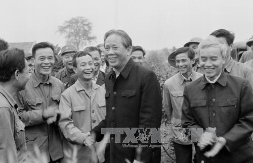 Tổng Bí thư Lê Duẩn nói chuyện với cán bộ, công nhân Nông trường Tây Hiếu, tỉnh Nghệ Tĩnh (22/4/1979). Ảnh: Văn Bảo - TTXVN