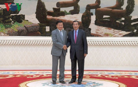 Thủ tướng Lào (trái) và Thủ tướng Campuchia tại cuộc gặp ở Phnom Penh