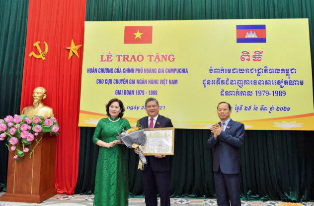 Thay mặt Ban Cán sự Đảng, Ban lãnh đạo NHNN, Thống đốc cũng bày tỏ lời cảm ơn sâu sắc tới Chính phủ Hoàng gia Campuchia và Ngân hàng Quốc gia Campuchia đã ghi nhận và trao tặng Huân chương, Bằng ghi công đối với các cựu chuyên gia ngành Ngân hàng Việt Nam.