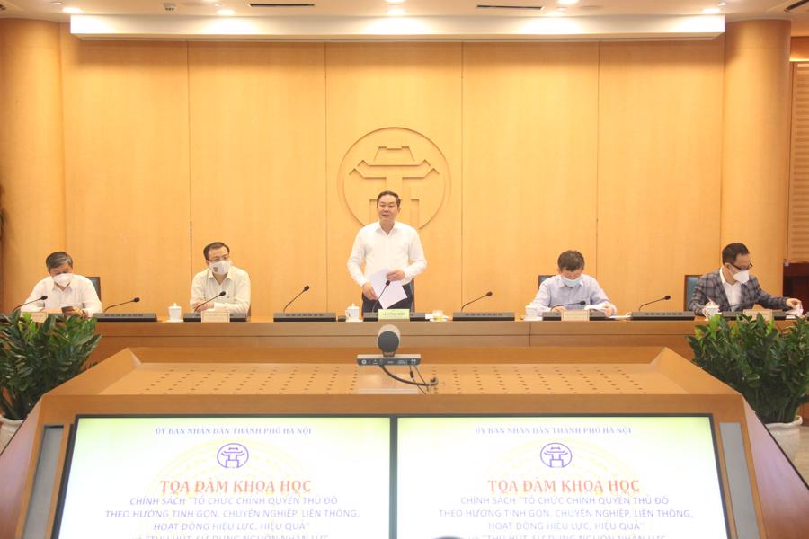 Phó Chủ tịch Thường trực UBND TP cho rằng, hai tọa đàm khoa học chính sách này có tính chất quan trọng đối với Luật Thủ đô (sửa đổi). Cụ thể, thành phố cần có tổ chức bộ máy chính quyền đủ năng lực để thực hiện Nghị quyết (mới) về phương hướng, nhiệm vụ phát triển Thủ đô giai đoạn 2021-2030, tầm nhìn đến năm 2045 và Luật Thủ đô (sửa đổi) đề ra. Từ yêu cầu tổ chức bộ máy chính quyền, cần có đội ngũ cán bộ chất lượng cao nhằm phục vụ công cuộc xây dựng và phát triển Thủ đô.