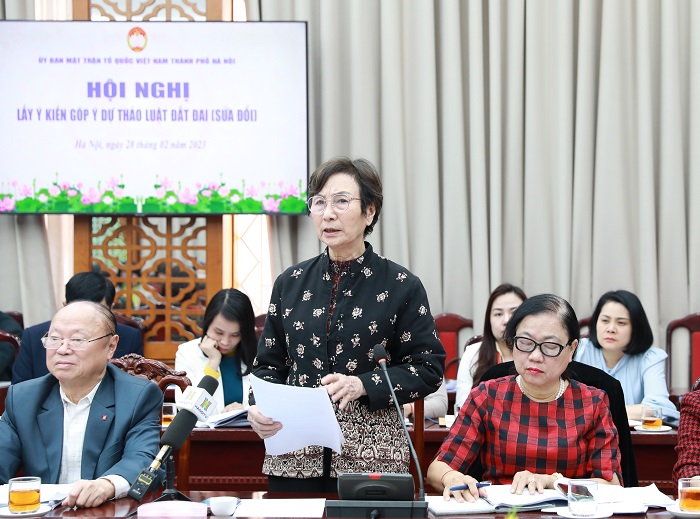 Phát biểu tại hội nghị, Chủ tịch Ủy ban MTTQ Việt Nam thành phố Hà Nội Nguyễn Lan Hương nhấn mạnh, việc tổ chức hội nghị góp ý kiến cho dự thảo Luật Đất đai (sửa đổi) đang được MTTQ Việt Nam, các tổ chức thành viên các cấp tích cực triển khai rộng rãi với nhiều hình thức. Đến ngày 28/2/2023, Ủy ban MTTQ Việt Nam 19 quận, huyện, thị xã đã tổ chức hội nghị với 175 ý kiến góp ý trực tiếp và 152 ý kiến góp ý bằng văn bản; Ủy ban MTTQ Việt Nam 521 xã, phường, thị trấn tổ chức hội nghị đã ghi nhận hơn 2.000 ý kiến góp ý đối với dự thảo Luật.