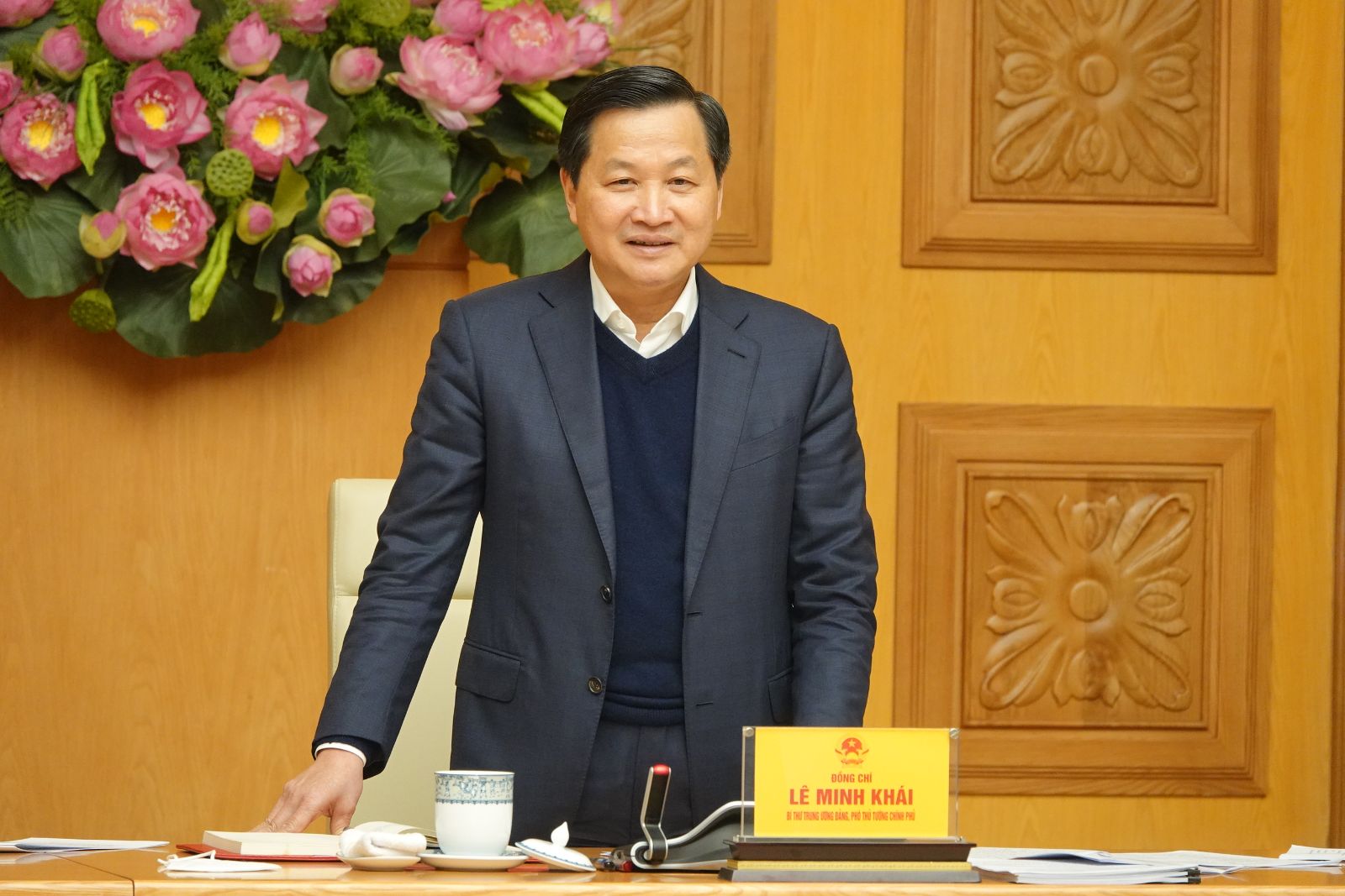 | Phó Thủ tướng Chính phủ Lê Minh Khái phát biểu tại cuộc họp (Ảnh: BTC) |