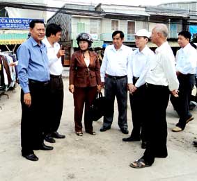 | Lãnh đạo TP Cần Thơ kiểm tra tiến độ XDNTM ở xã Thạnh Quới, huyện Vĩnh Thạnh. |