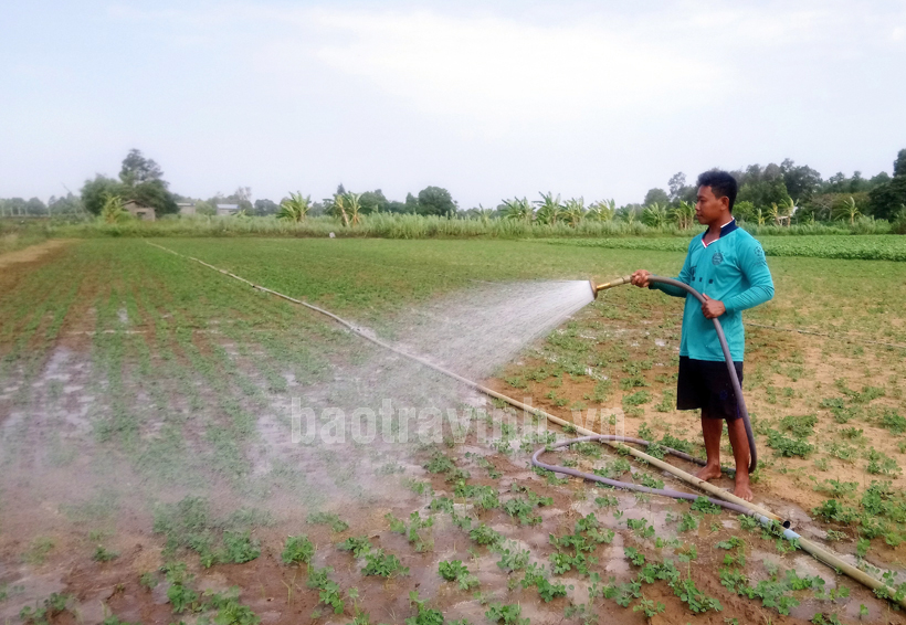 Nông dân Dương Văn Lực, ngụ cùng ấp cho biết thêm: mặc dù giá đậu phộng thường xuyên biến động nhưng ông vẫn giữ ổn định diện tích trong vụ đông - xuân khoảng 0,6ha hơn 05 năm qua. Cây đậu phộng dễ trồng, nhẹ công chăm sóc hơn so với những cây trồng khác, vừa cải tạo đất vừa phục vụ chăn nuôi. Thời gian chăm sóc, nhất là khâu tưới phun chỉ cần tưới một lần/ngày hoặc 02 - 03 ngày tưới/lần, tùy vào điều kiện đất đai có phương pháp chăm sóc hợp lý, giúp cây ra hoa đậu hạt chắc.