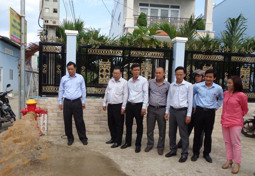 (bìa trái) kiểm tra công trình cấp nước sạch ở xã Long Hậu