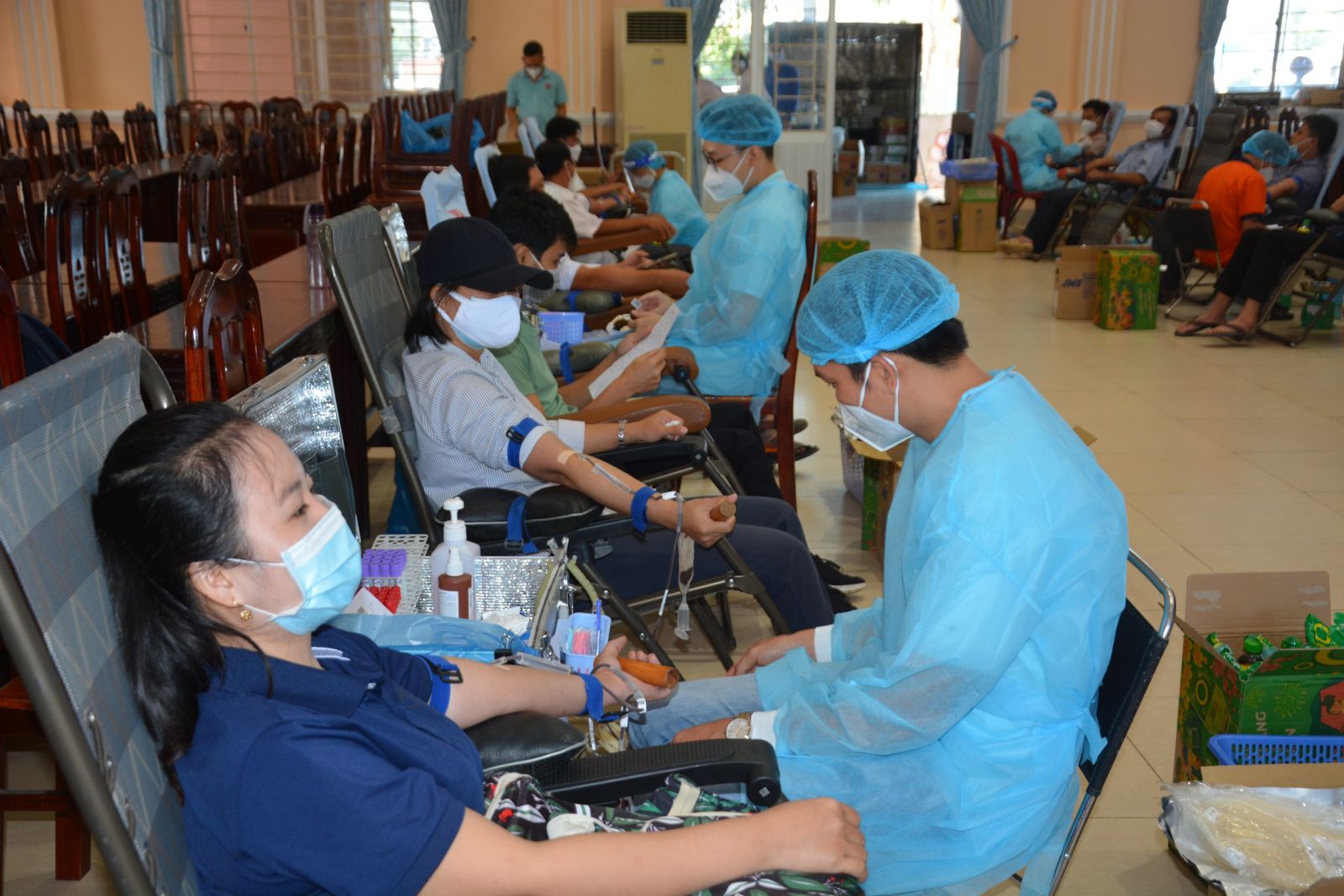 Ngày 16/01, Bệnh viện Truyền máu Huyết học TP.HCM phối hợp Ban Chỉ đạo hiến máu tình nguyện huyện Cần Giuộc, tỉnh Long An tổ chức hiến máu nhân đạo đợt 1 năm 2022.