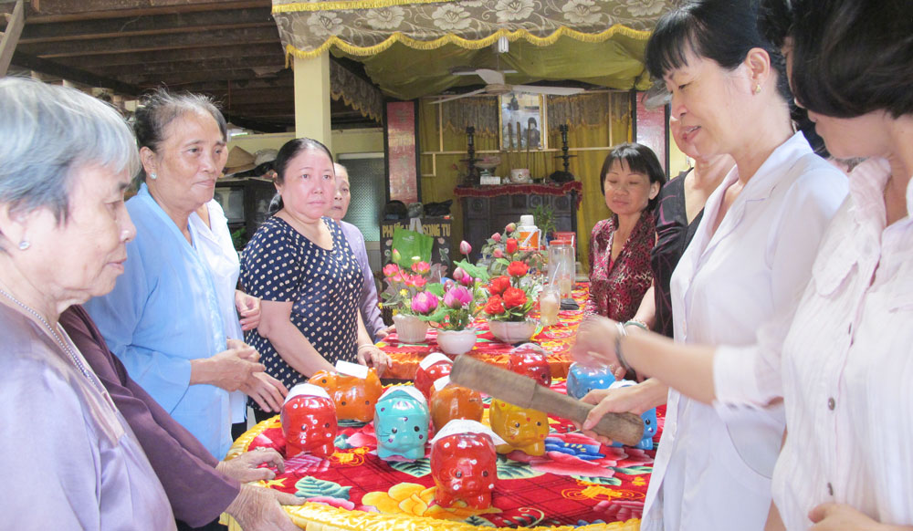 Chi hội trưởng Chi hội PN khu phố 4 - Mai Thị Phú cho biết: “Chúng tôi vận động hội viên PN mỗi ngày tiết kiệm một ít tiền từ chi phí sinh hoạt hằng ngày để nuôi heo đất. Việc làm này được nhiều người ủng hộ nhằm chia sẻ với những gia đình có hoàn cảnh kém may mắn”.