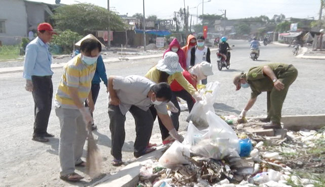 Sau lễ phát động, cán bộ và nhân dân xã đã ra quân thu gom rác, dọn dẹp vệ sinh trục đường chính của ấp Thanh Hà và rác thải trước cổng Công ty TNHH Giầy Fuluh./.