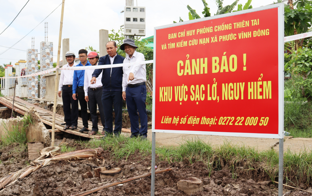 Phó Chủ tịch UBND huyện Cần Giuộc - Huỳnh Minh Trí đề nghị Phòng Nông nghiệp và Phát triển nông thôn phối hợp UBND 2 xã Phước Lại và Phước Vĩnh Đông xử lý vị trí sạt lở để không gây ảnh hưởng đến việc đi lại của người dân; đánh giá tình trạng sạt lở, mức độ ảnh hưởng để có biện pháp xử lý kịp thời; gắn biển cảnh báo, rào chắn, tuyên truyền, vận động người dân không đến gần khu vực sạt lở, nhằm bảo đảm an toàn tính mạng./.