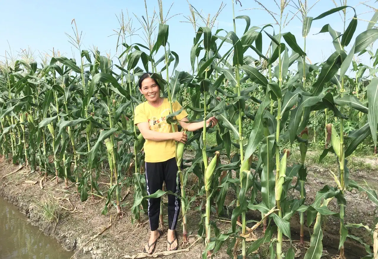 Hằng ngày, chị Mai Thi chăm bón rẫy bắp xanh tốt.