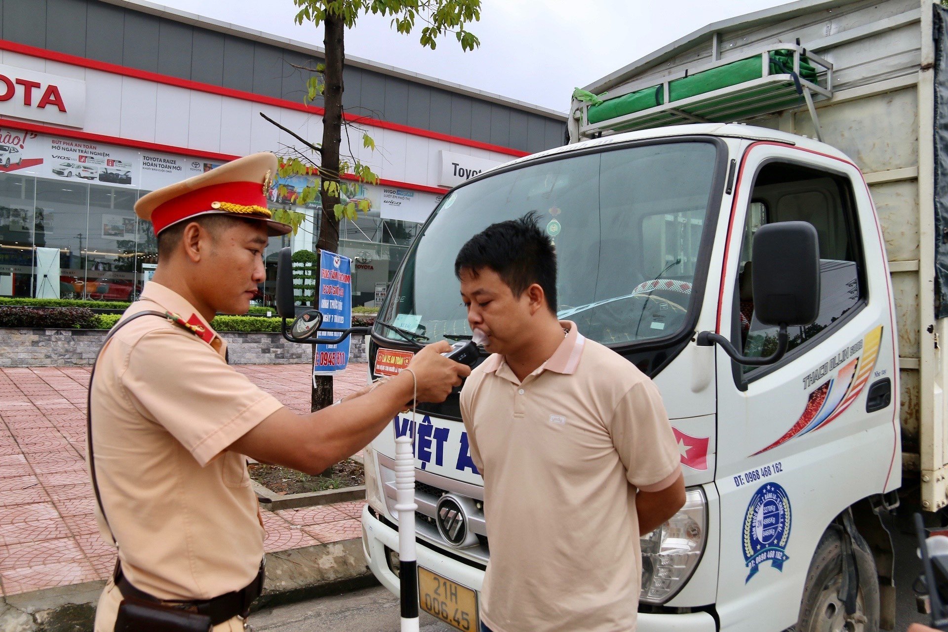 | Cảnh sát giao thông kiểm tra nồng độ cồn (Ảnh: PT) |
