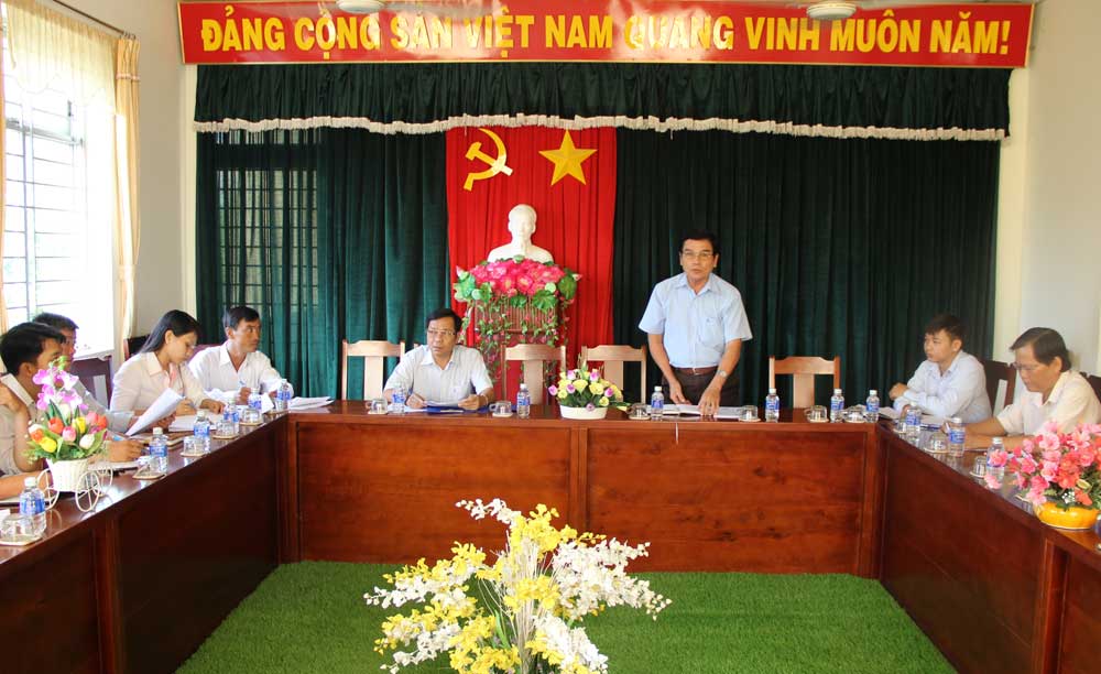 Phó Trưởng Ban Kinh tế và Ngân sách HĐND tỉnh - Trần Minh Tùng làm việc tại UBND huyện Vĩnh Hưng về tình hình thực hiện Chương trình mục tiêu Quốc gia “Vệ sinh môi trường nông thôn”.