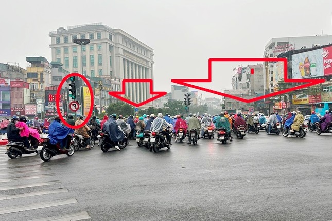 Cảnh tượng vượt đèn đỏ không phải là hiếm gặp tại các nút giao thông lớn ở Hà Nội. Vào khoảng 7h sáng cùng ngày, tại nút giao Xã Đàn - Ô Chợ Dừa, các dòng phương tiện tranh thủ khoảng thời gian đèn xanh để vượt qua nút. Tuy nhiên, khi đèn đỏ bật lên, thay vì dừng lại theo quy định, nhiều xe máy đã rẽ trái để lách qua, tránh phải đứng chờ đèn đỏ hoặc di chuyển chậm trong lúc các tuyến đường đông đúc. Việc này không chỉ gây ùn tắc giao thông mà còn làm gia tăng nguy cơ tai nạn.