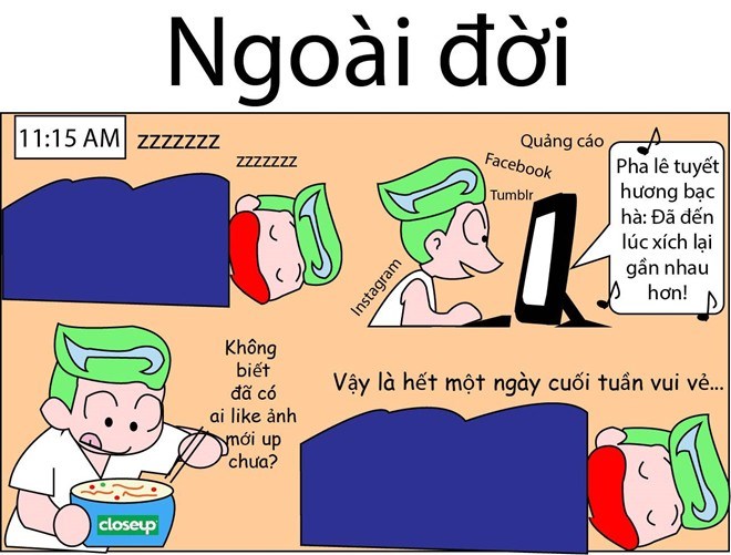 Những comment phản hồi thì thượng vàng hạ cám nặc mùi chủ quan, ấu trĩ, cực đoan, thô tục như: “Bọn chó H., bọn B.T…” hay thâm tình đậm đà như: “cám ơn anh đã có công sưu tầm cho chúng em tiếp thu nhiều kiến thức..”, “Anh là số 1, cố gắng thêm nhiều bài viết hay nữa nha anh!...”. Bài viết nào, comment nào anh cũng khoe mẽ cùng tôi và vô cùng tự hào, sung sướng trong khi đó vợ anh cũng là một đồng nghiệp không ngớt than phiền: “Anh ấy giờ là người của thế giới ảo rồi, không còn biết thực tế mình đang sống là gì nữa, quên ăn, quên ngủ chỉ có F/B thôi!”.