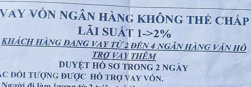 Ngoài ra, không những các trang mạng mà trên khắp các trục đường, các cột điện công cộng, tờ rơi được dán đầy với những lời quảng cáo cho vay tiền và số điện thoại liên hệ trực tiếp.
