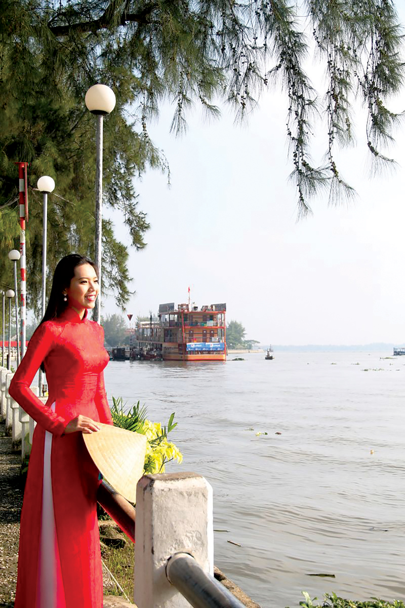 Thiếu nữ thướt tha ở bến Ninh Kiều. Ảnh: DUY KHÔI