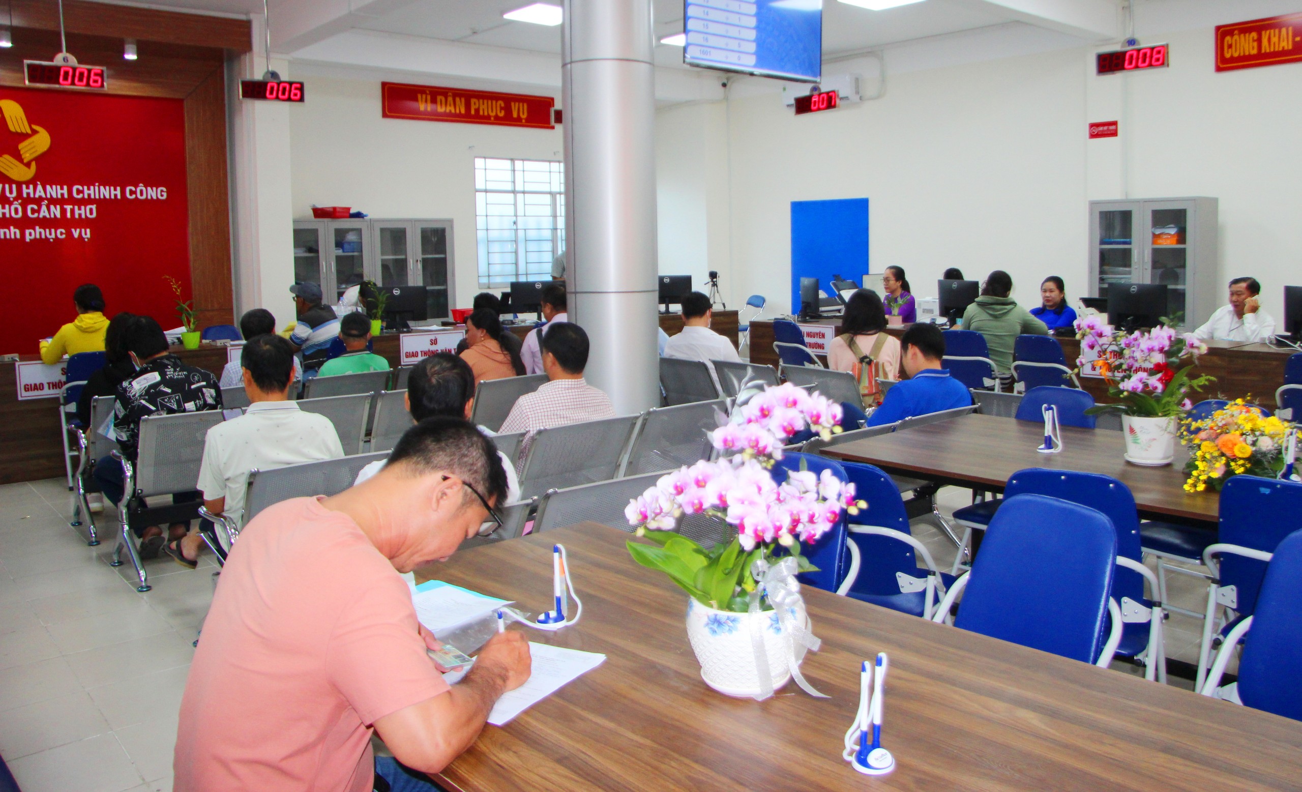 | Người dân đến liên hệ giải quyết thủ tục hành chính tại Trung tâm Phục vụ hành chính công thành phố Cần Thơ sáng 28/2. |
